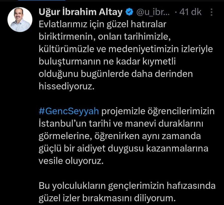 Altay paylaşımında, çocukların ve gençlerin geçmişle bağ kurmasının önemine vurgu yaptı. Açıklamasında, “Evlatlarımız için güzel hatıralar biriktirmenin, onları tarihimizle, kültürümüzle ve medeniyetimizin izleriyle buluşturmanın ne kadar kıymetli olduğunu daha derinden hissediyoruz” ifadelerine yer verdi.