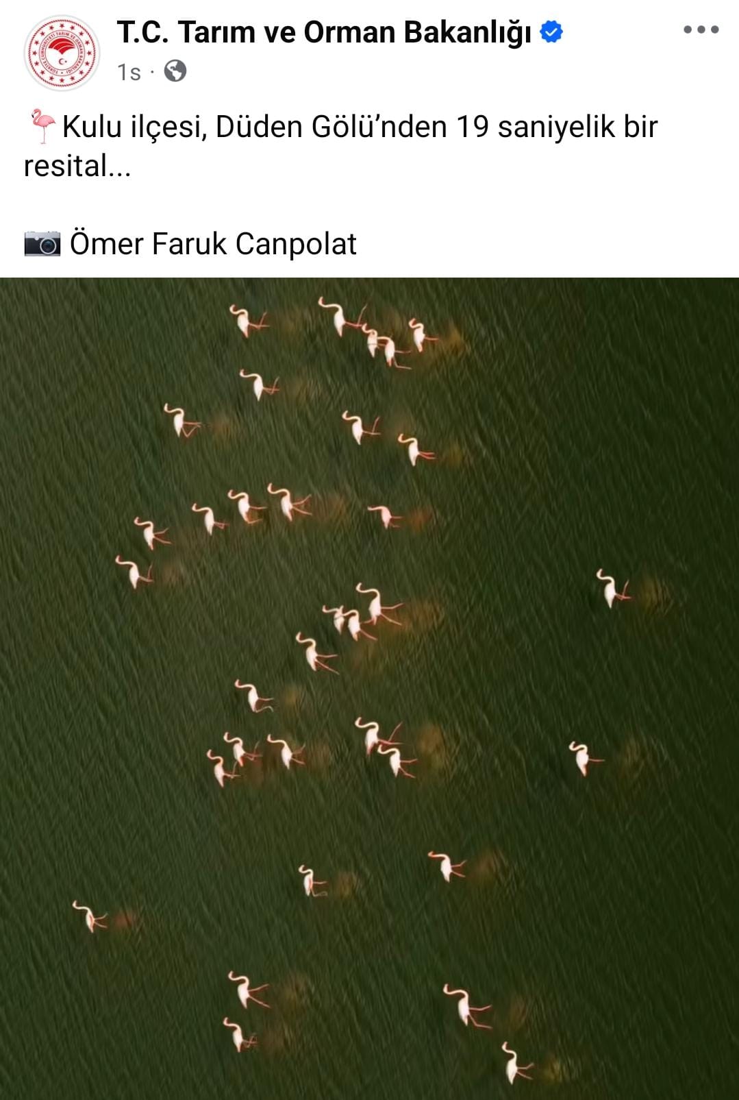 Kulu Kaymakamı Ömer Faruk Canpolat tarafından kaydedilen görüntüler, Tarım ve Orman Bakanlığı’nın resmi hesaplarından paylaşılarak kısa sürede geniş kitlelere ulaştı. “19 saniyelik bir resital” olarak paylaşılan görüntülerde flamingoların su üzerindeki zarif hareketleri izleyenleri adeta büyüledi.