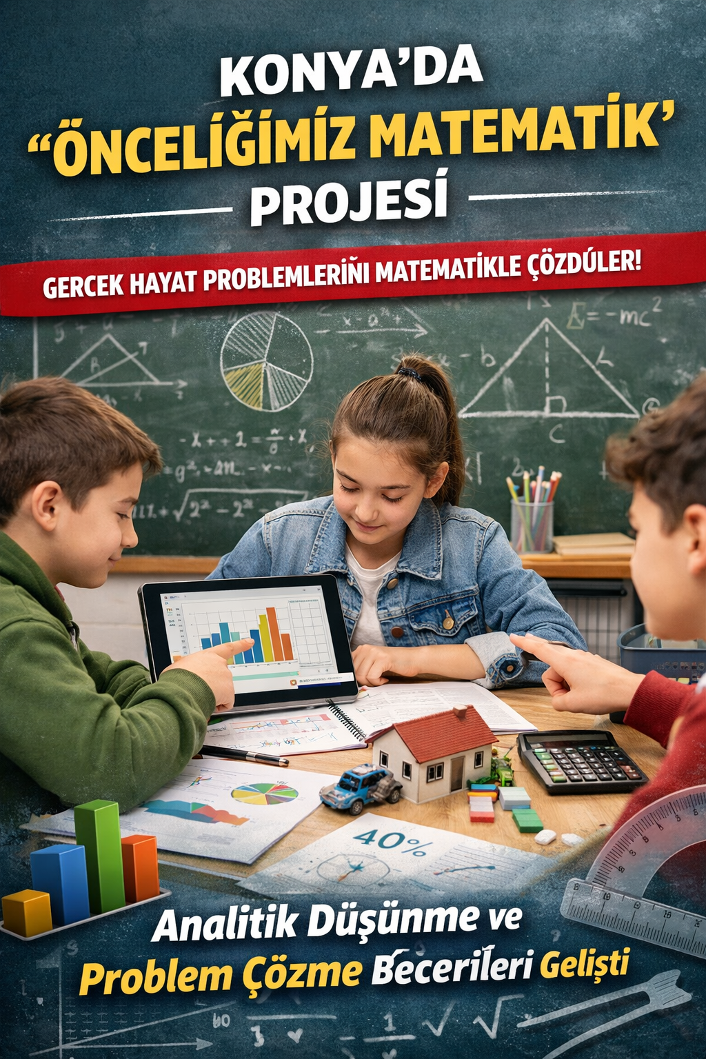 “Bizim Okulumuz” (Okul Merkezli Gelişim Projesi) kapsamında hayata geçirilen çalışma, Türkiye Yüzyılı Maarif Modeli doğrultusunda gerçekleştirildi. Proje ile öğrencilerin gerçek yaşam problemlerine matematiksel bakış açısıyla yaklaşmaları, çözüm üretmeleri ve elde ettikleri sonuçları yorumlamaları hedeflendi.