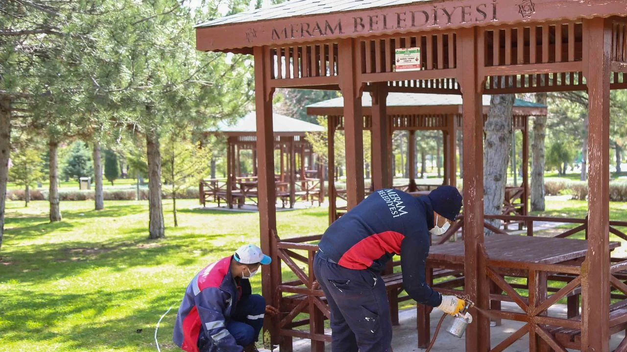Konya’nın Meram ilçesinde park ve yeşil alanlarda yürütülen bakım çalışmalarıyla alanlar yaz sezonuna hazır hale getirildi.