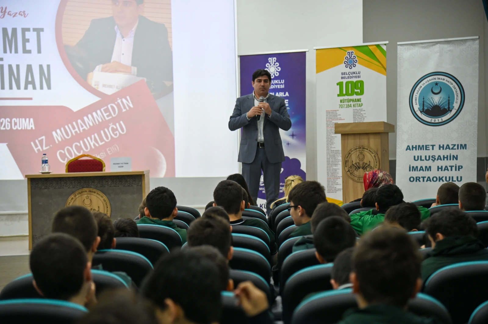 Etkinlik kapsamında Eğitimci Yazar Mehmet Ali İnan, Ahmet Hazım Uluşahin İmam Hatip Ortaokulu’nda öğrencilerle bir araya geldi. İnan, “Hz. Muhammed (S.A.V)’in Çocukluğu” adlı kitabı üzerine söyleşi gerçekleştirerek öğrencilerin sorularını yanıtladı.