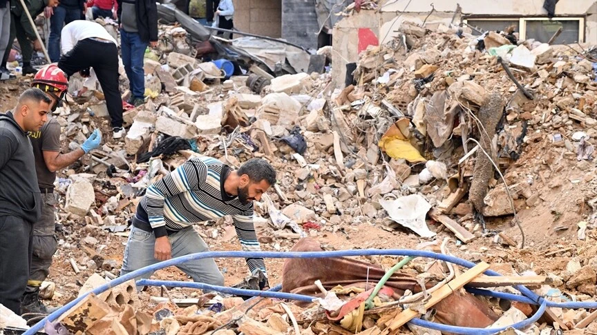 Lübnan’ın güneyinde gerçekleştirilen saldırı sonrası ekipler, yıkılan binalarda arama-kurtarma faaliyetlerine devam ediyor.