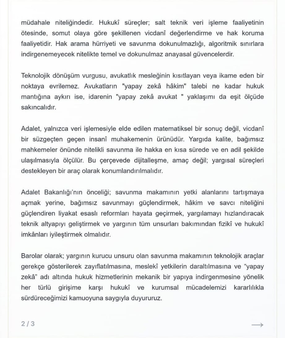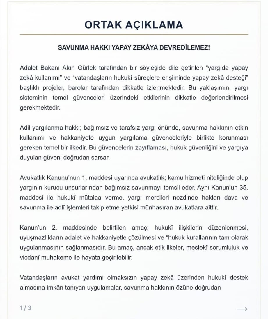 Türkiye Genelindeki Barolardan Yapay Zeka Uyarısı: “Savunma Hakkı Yapay Zekaya D...