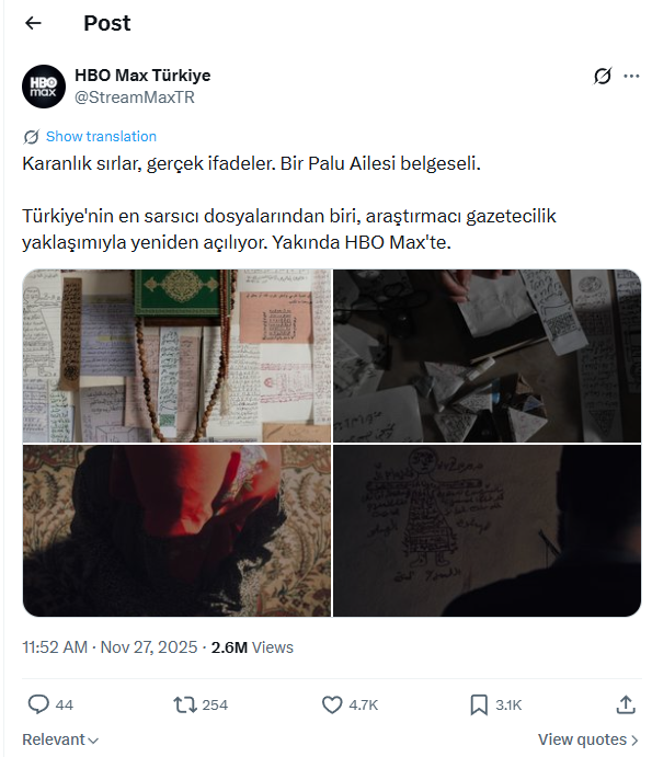 Türkiye’yi sarsan Palu ailesi olayı belgesel oluyor. HBO Max’te yayınlanacak yapım büyük merak uyandırdı.